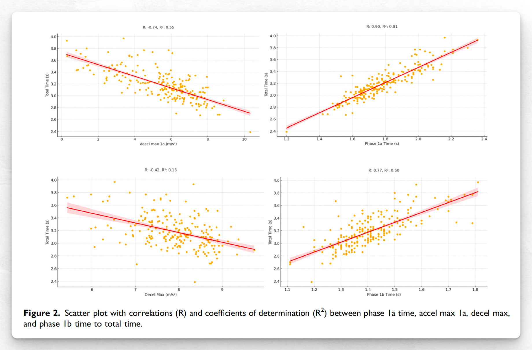 - Key variables included time for each phase, top speed, maximum acceleration in each phase, and maximum deceleration.