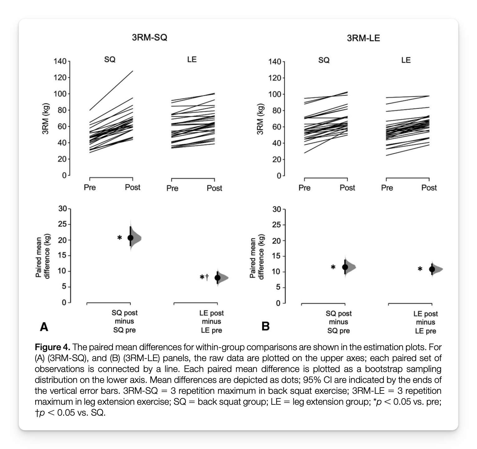 - Strength using 3RM in both exercises
