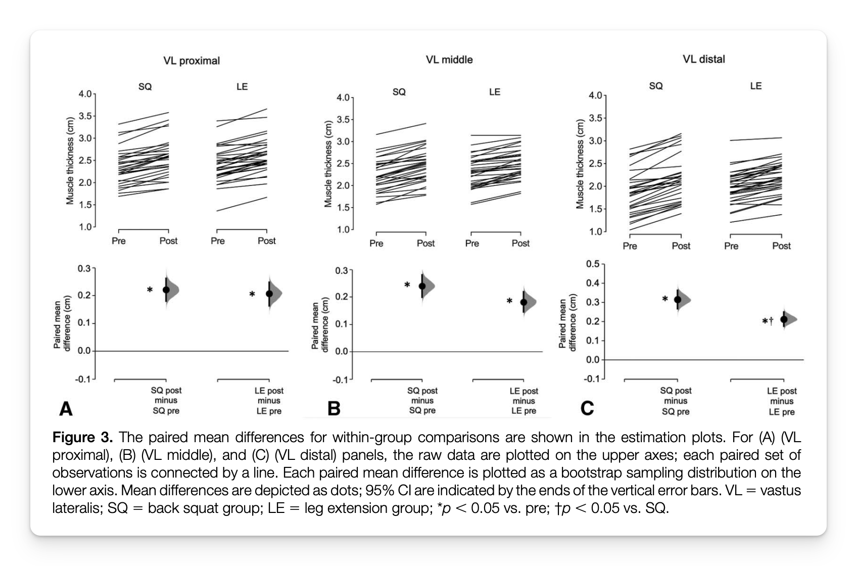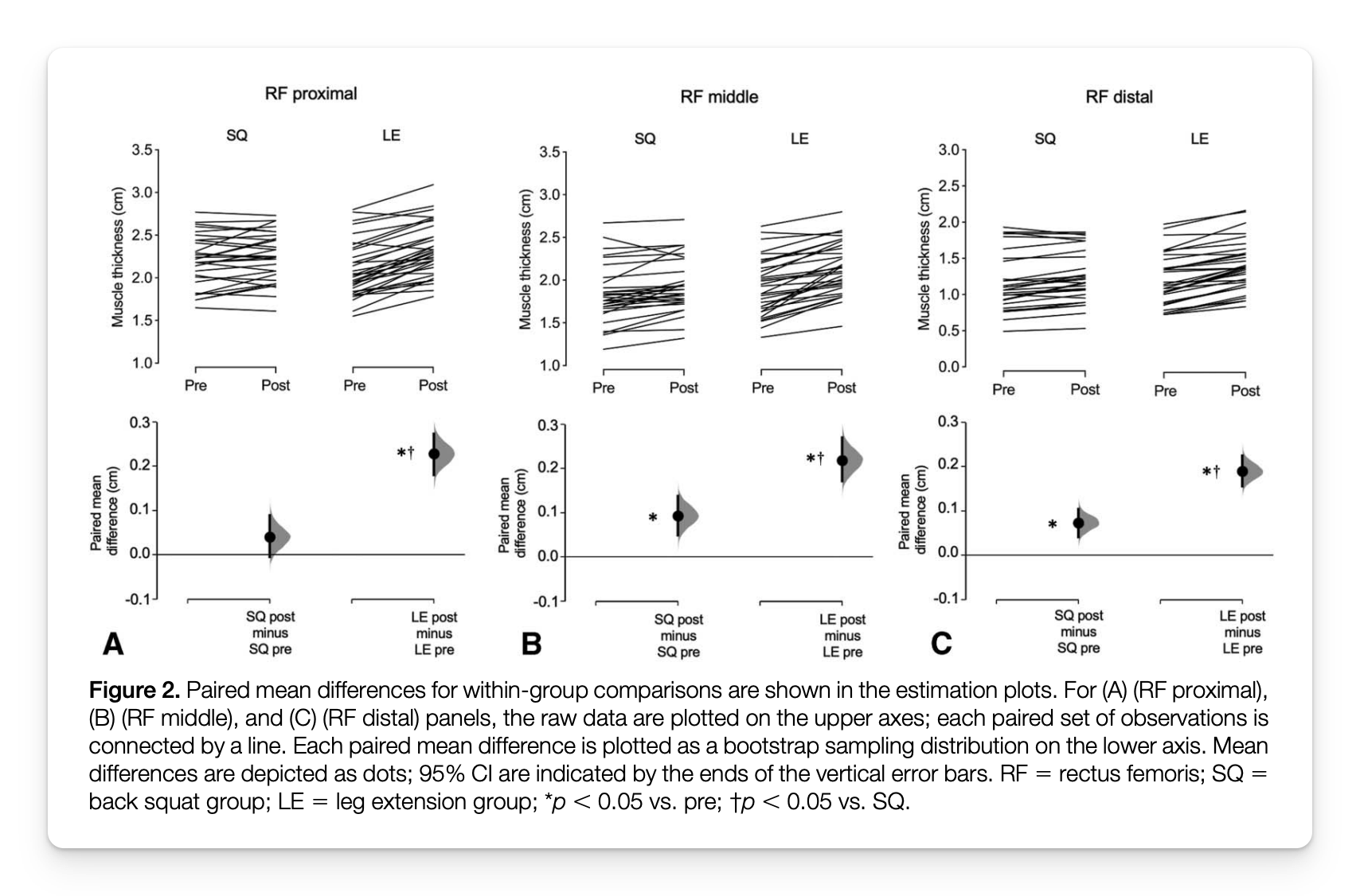 - The squat produced greater growth in the distal region (+18.2% vs +11.2%)
