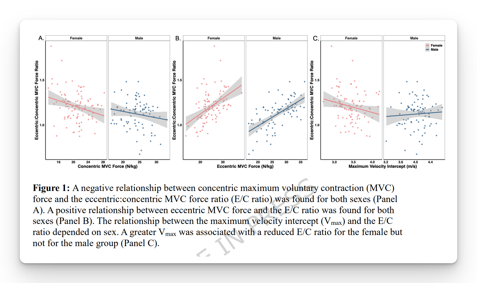 - Higher eccentric strength meant higher E/C ratio (strong relationship, R² = 0.33)