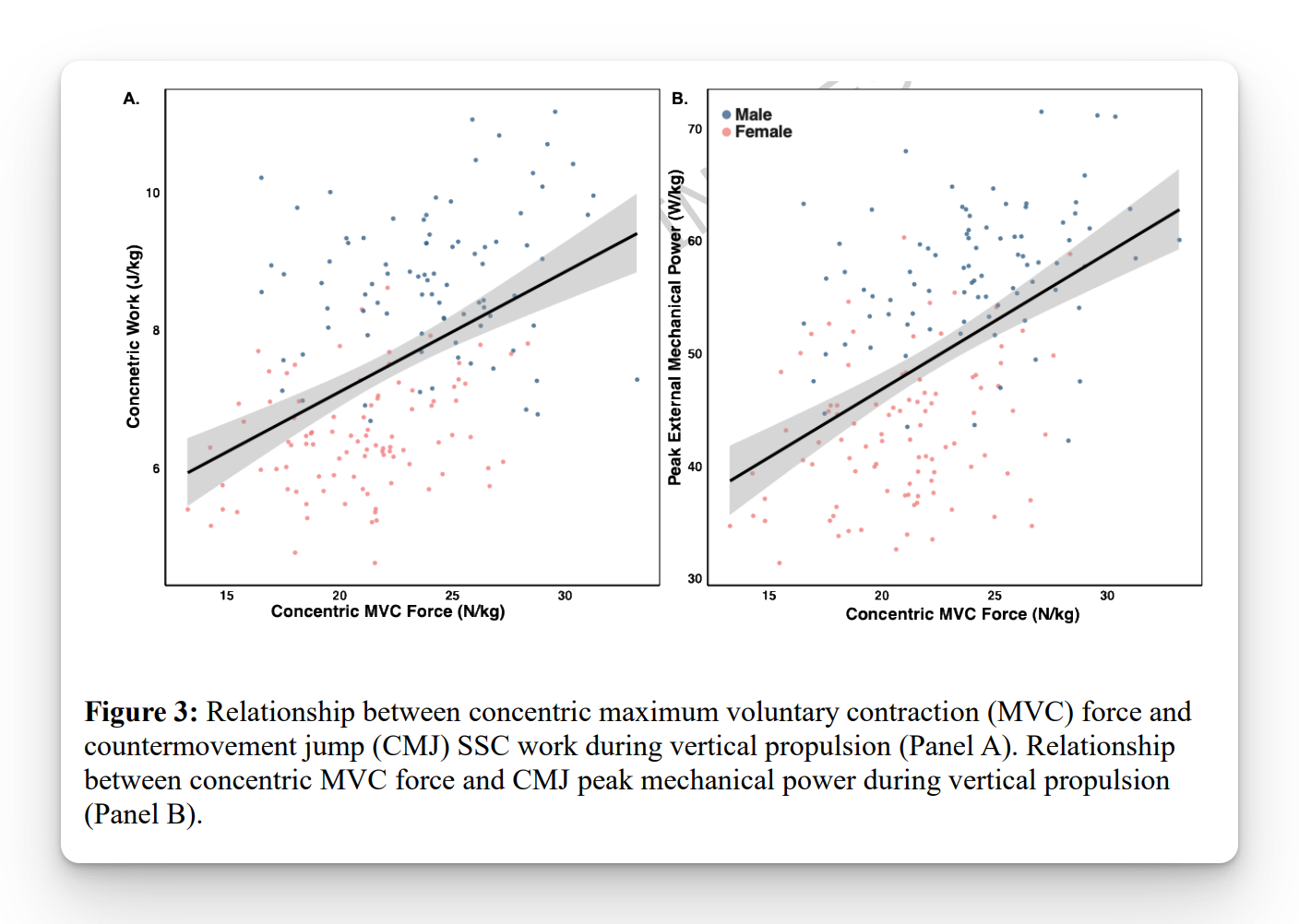 - Concentric strength dominated, explaining ~62–64% of variance in CMJ power and work