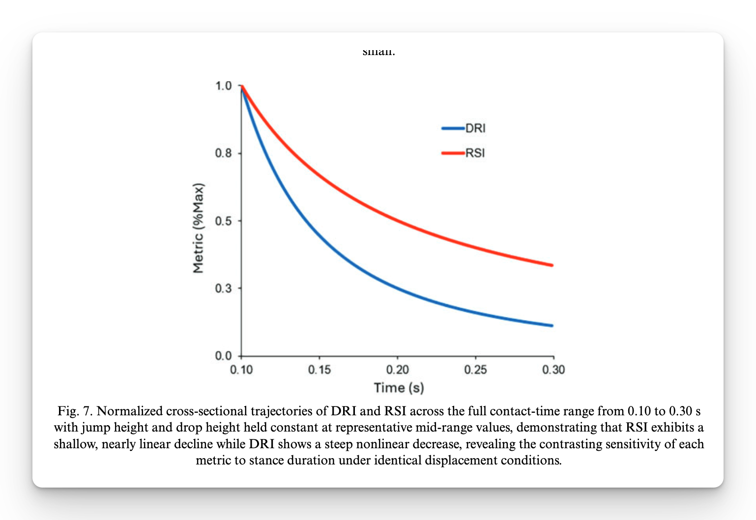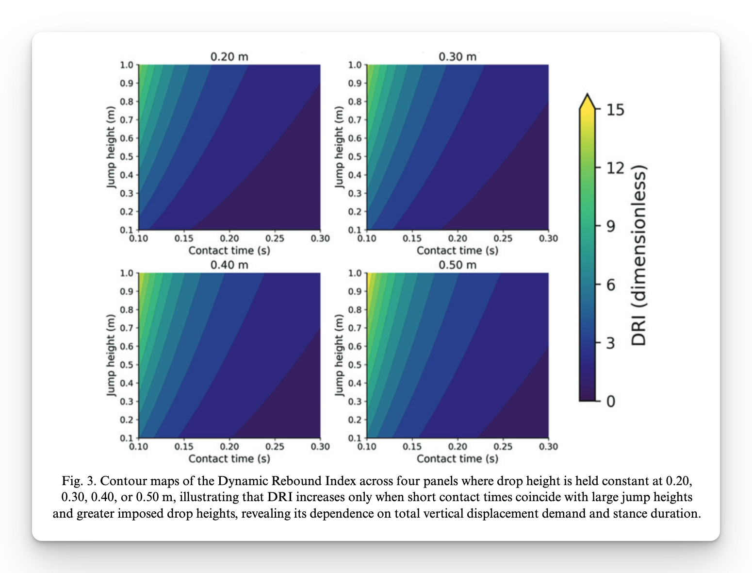- By incorporating both displacement and time under gravity, DRI reflects how effectively the athlete manages the mechanical demands of the stretch–shortening cycle.