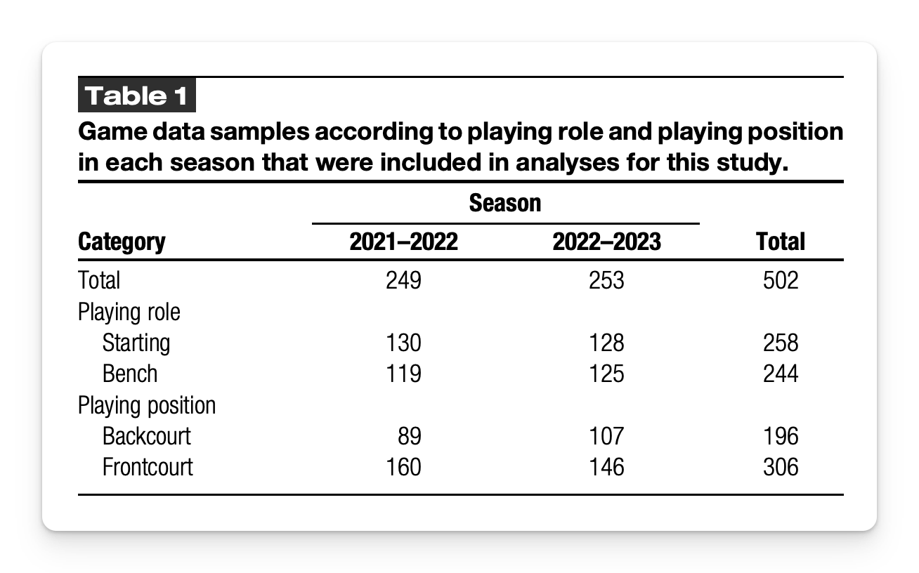 While most existing data is outdated or from other leagues like the NBA or EuroLeague, this study gives modern, real-world data from a professional league (Australian NBL) using wearable tech.