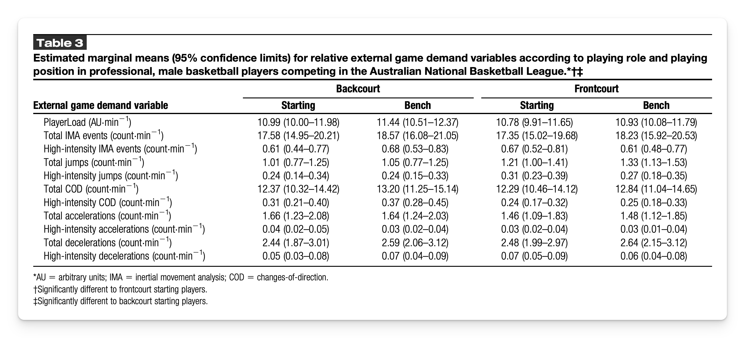 - Are starters, bench players, and positions actually experiencing different physical demands?