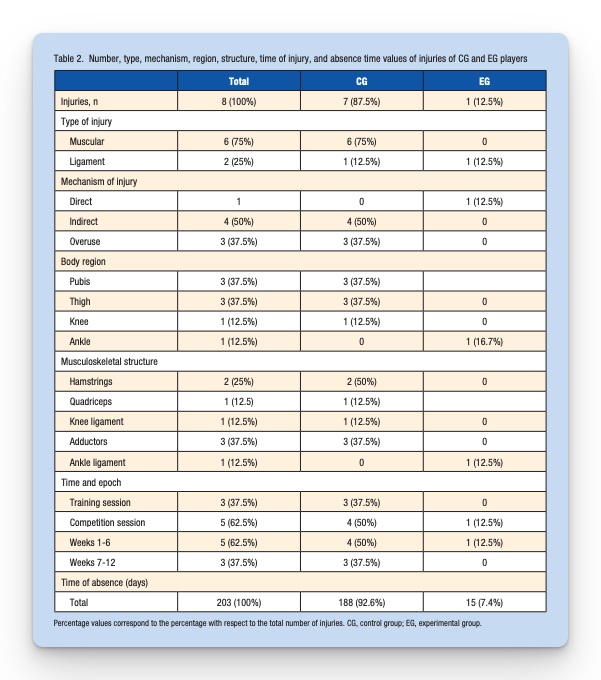 - Randomized controlled trial with 20 U18 male players from the same Spanish “División de Honor” team.