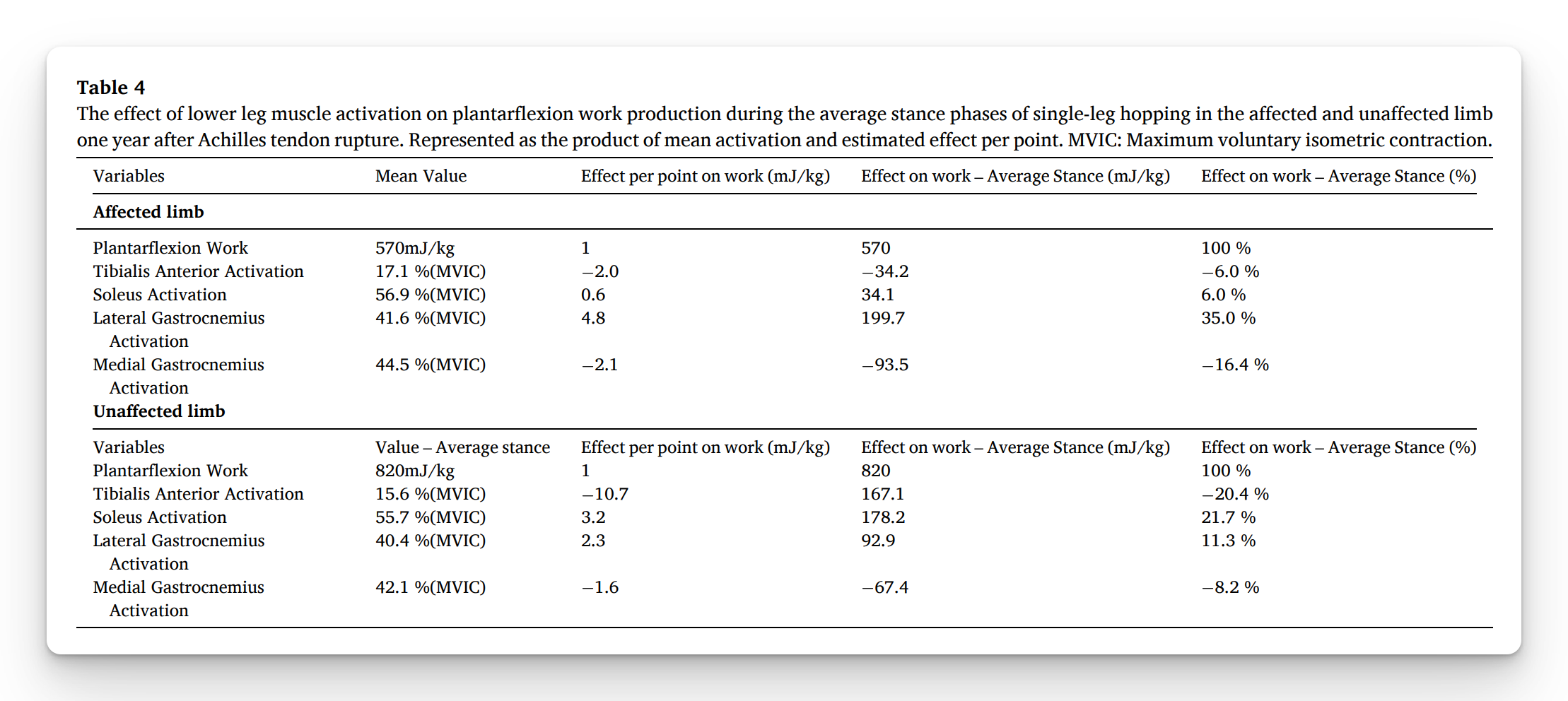 - For the soleus, the affected side had a ~81% reduction in effectiveness