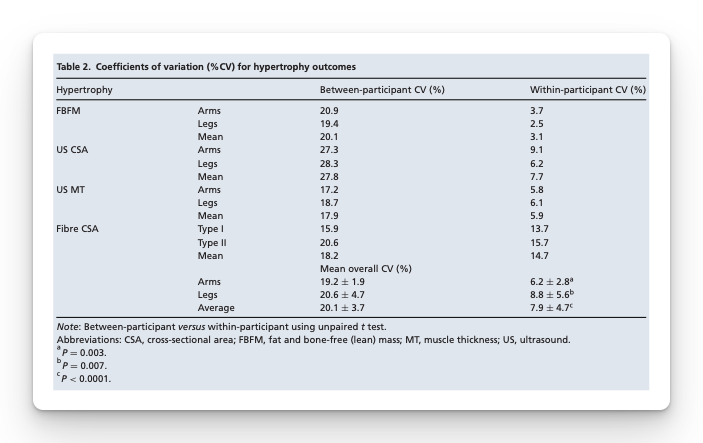 - Between participants, hypertrophy responses varied a lot