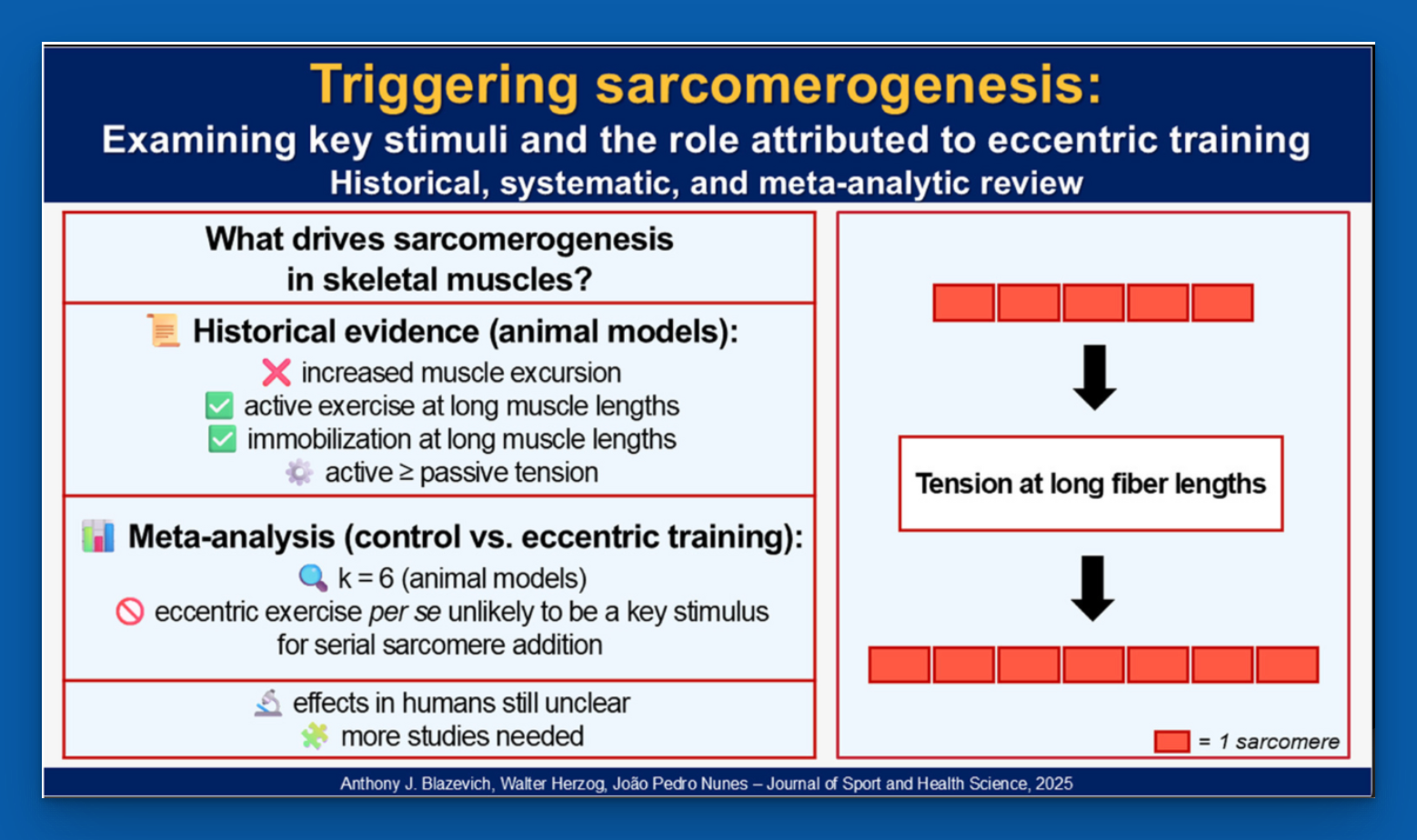 Blazevich AJ, Herzog W, Nunes JP (2025). Triggering sarcomerogenesis: Examining key stimuli and the role attributed to eccentric training—Historical, systematic, and meta-analytic review. Journal of Sport and Health Science.