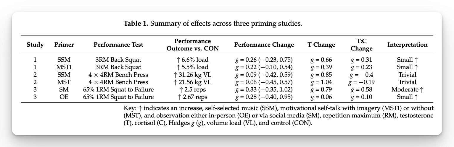 - Priming can create small, acute boosts in strength or endurance sets, and often nudges T upward.