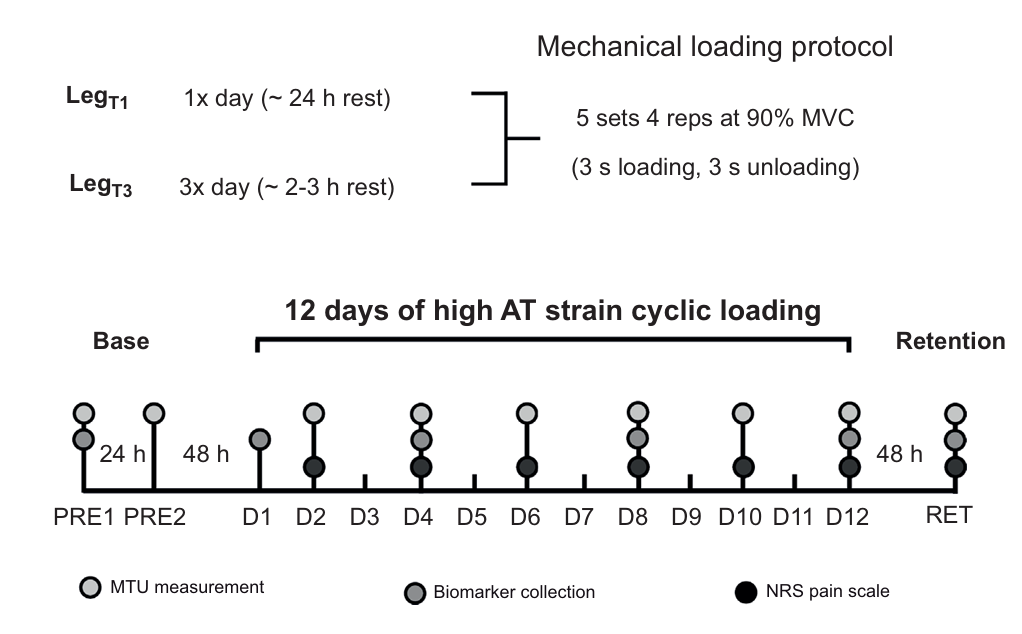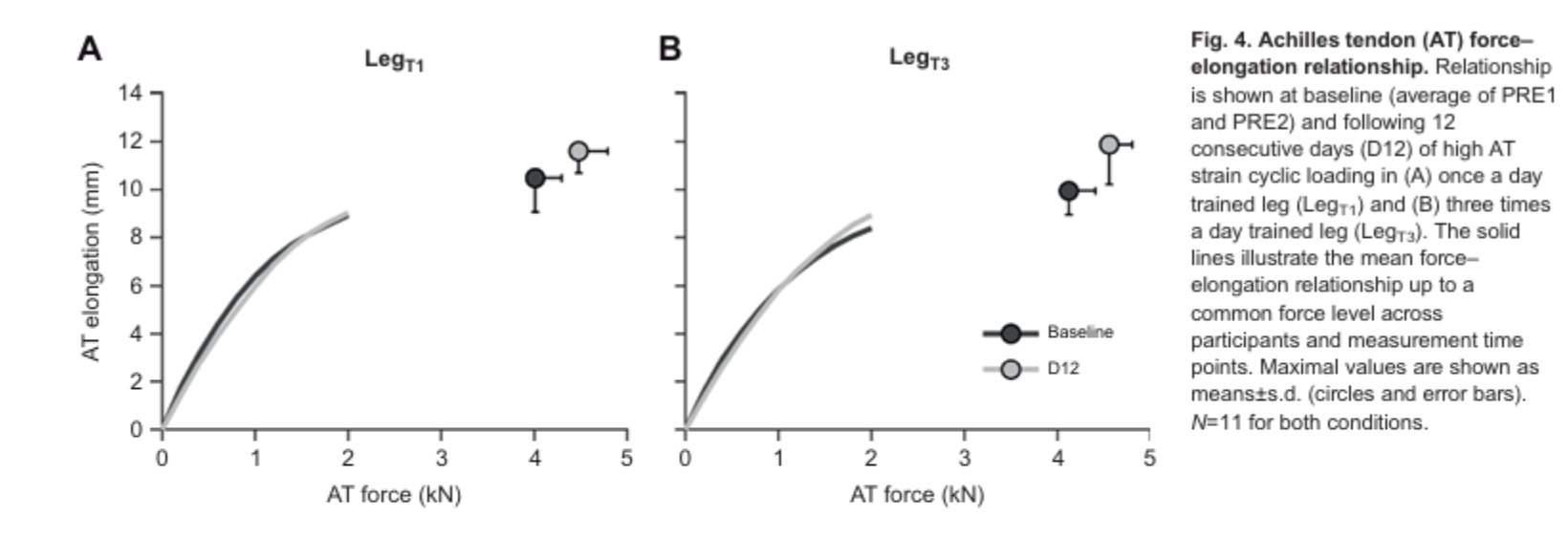 This study tested how the Achilles tendon responds to 12 consecutive days of high-strain loading, once per day vs. three times per day.