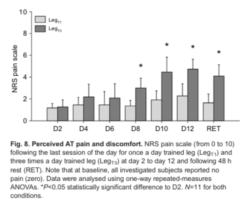 - LegT3: Moderate Achilles pain by day 8, lasting past the rest period.