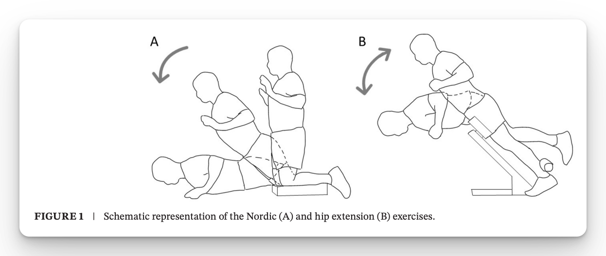 - Nordic Hamstring Exercise (NHE): eccentric only, supramaximal load