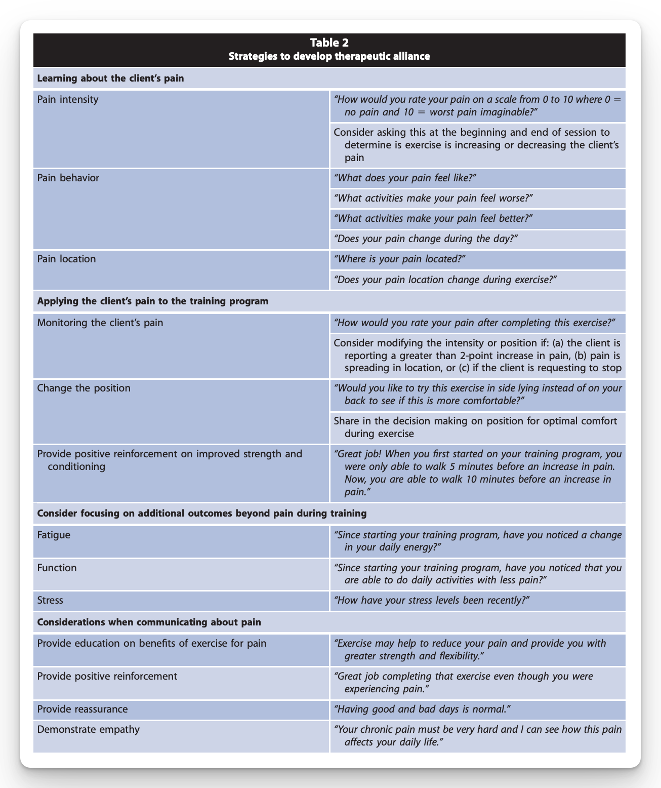 Ask about the pain: